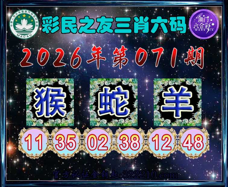 071期:【彩民之友】 🥰三肖六码🥰【猴蛇】开:羊48