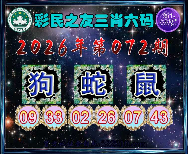 072期:【彩民之友】 🥰三肖六码🥰【狗蛇鼠】开:鸡46