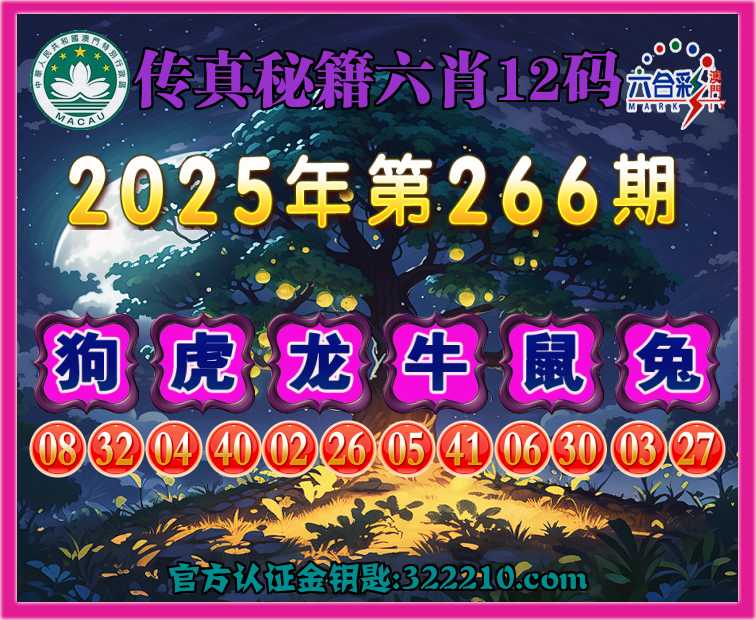 266期: 🚡《传真秘籍》 🚡六肖12码🚡【狗虎龙鼠兔】开:牛41