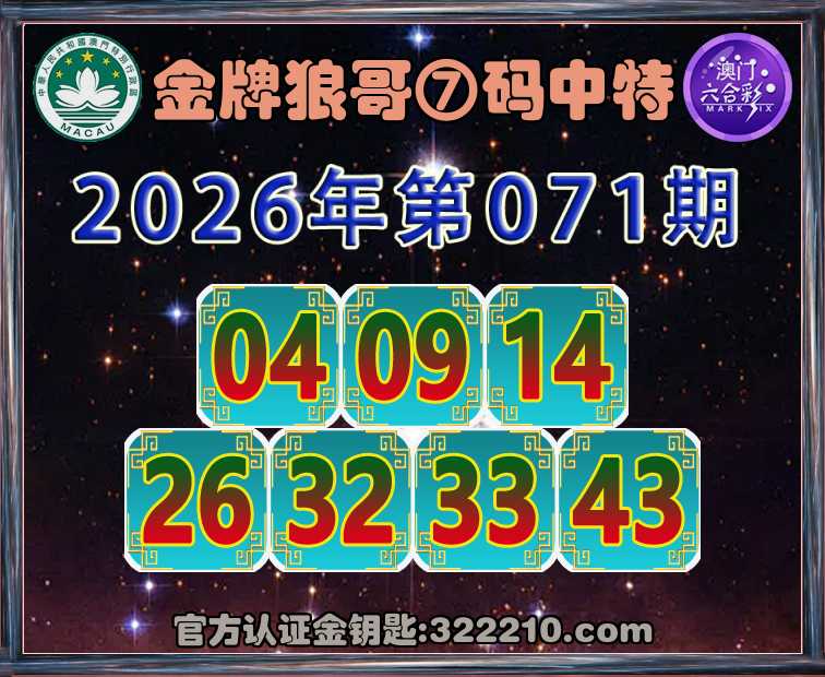 071期:《金牌狼哥》 🥬⑦码中特🥬【04.09.14.26.32.33.43】开:48