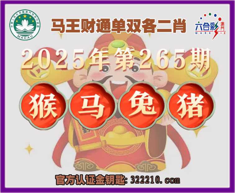 265期:【马王财通】 🎯单双各二肖🎯【.马.兔.猪】开:猴10