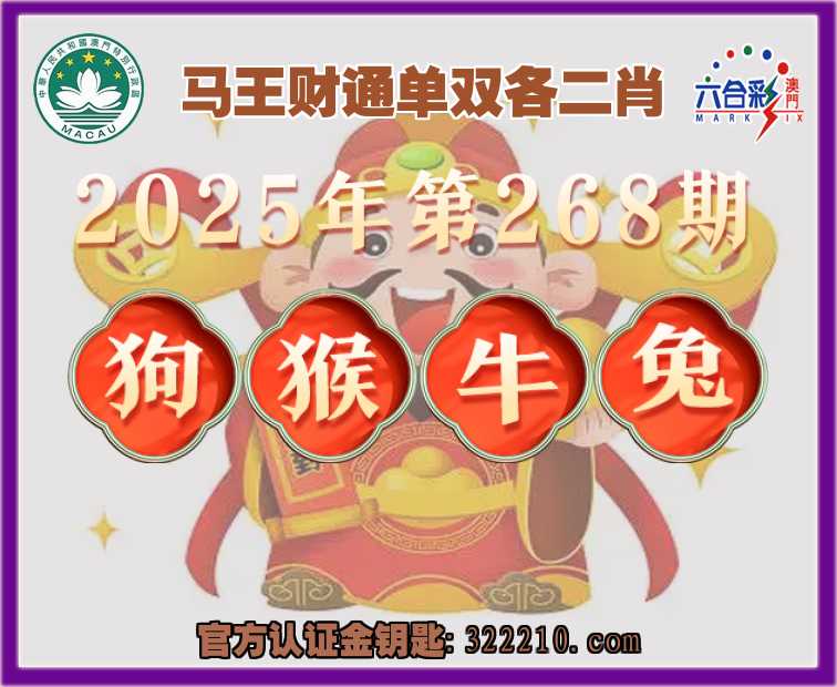 268期:【马王财通】 🎯单双各二肖🎯【狗..牛.兔】开:猴10