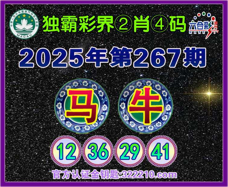267期:〖独霸彩界〗 🏇②肖④码🏇【马】【12.36.29.41】开:牛29