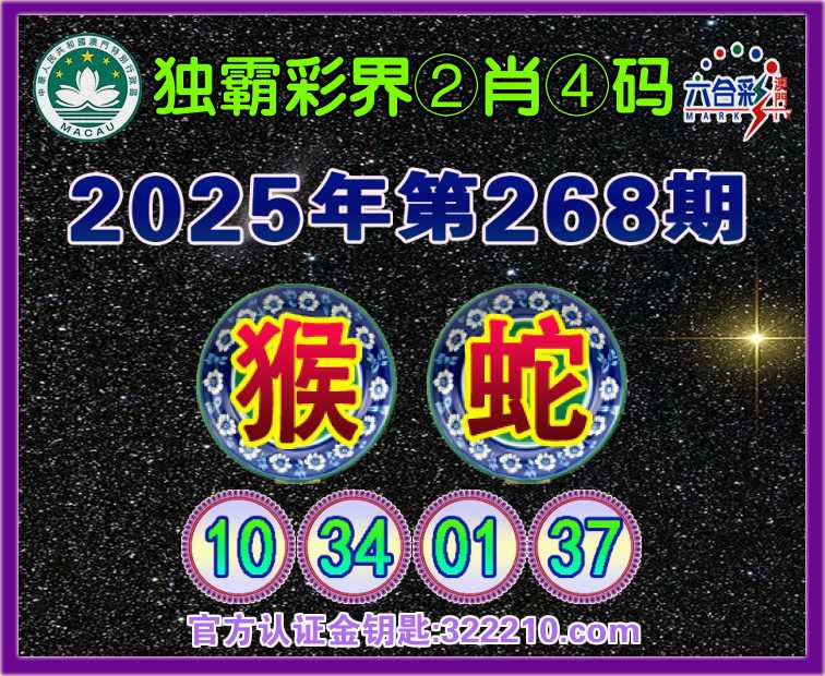 268期:〖独霸彩界〗 🏇②肖④码🏇【蛇】【10.34.01.37】开:猴10