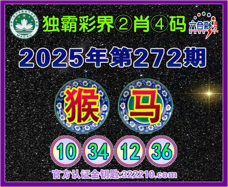 272期:〖独霸彩界〗 🏇②肖④码🏇【猴】【10.34.12.36】开:马36