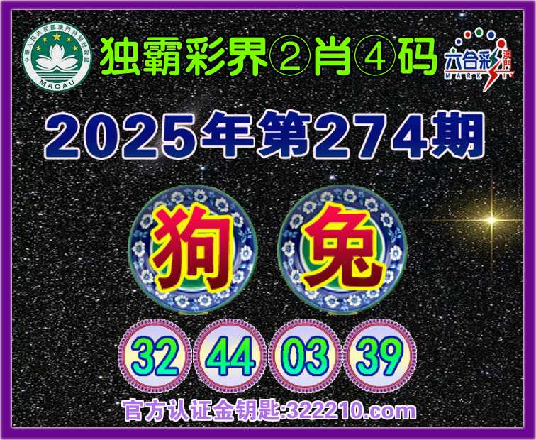 274期:〖独霸彩界〗 🏇②肖④码🏇【兔】【32.44.03.39】开:狗44