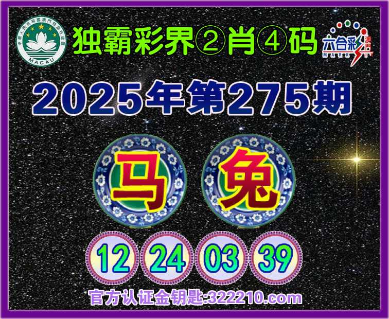 275期:〖独霸彩界〗 🏇②肖④码🏇【马兔】【12.24.03.39】开:鸡45
