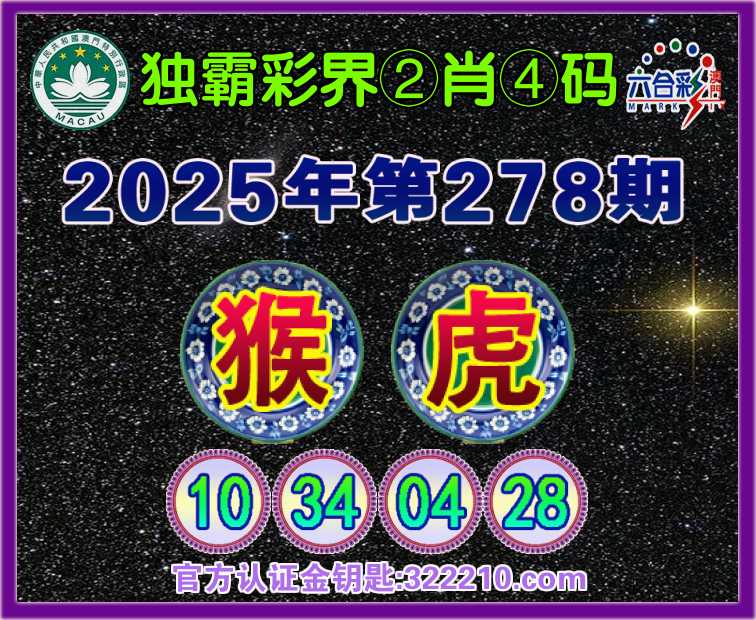 278期:〖独霸彩界〗 🏇②肖④码🏇【猴】【10.34.04.28】开:虎28