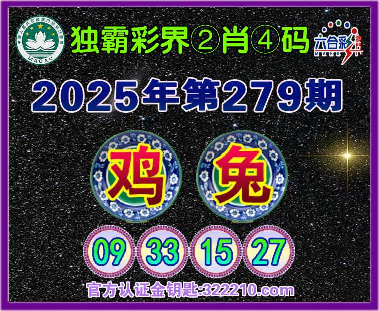 279期:〖独霸彩界〗 🏇②肖④码🏇【鸡】【09.33.15.27】开:兔27
