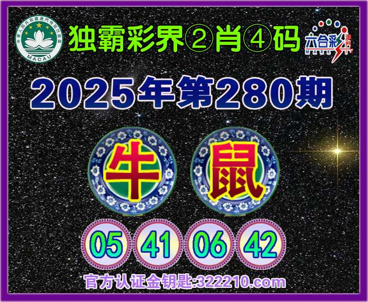 280期:〖独霸彩界〗 🏇②肖④码🏇【牛】【05.41.06.42】开:鼠42