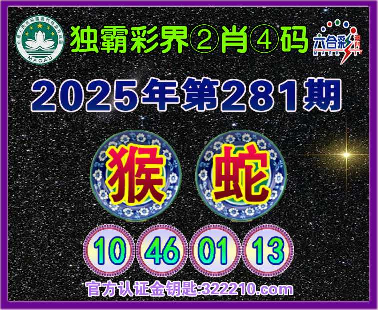 281期:〖独霸彩界〗 🏇②肖④码🏇【猴蛇】【10.46.01.13】开:羊47