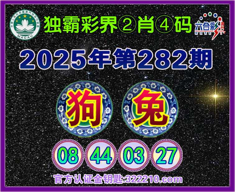 282期:〖独霸彩界〗 🏇②肖④码🏇【狗兔】【08.44.03.27】开:00准