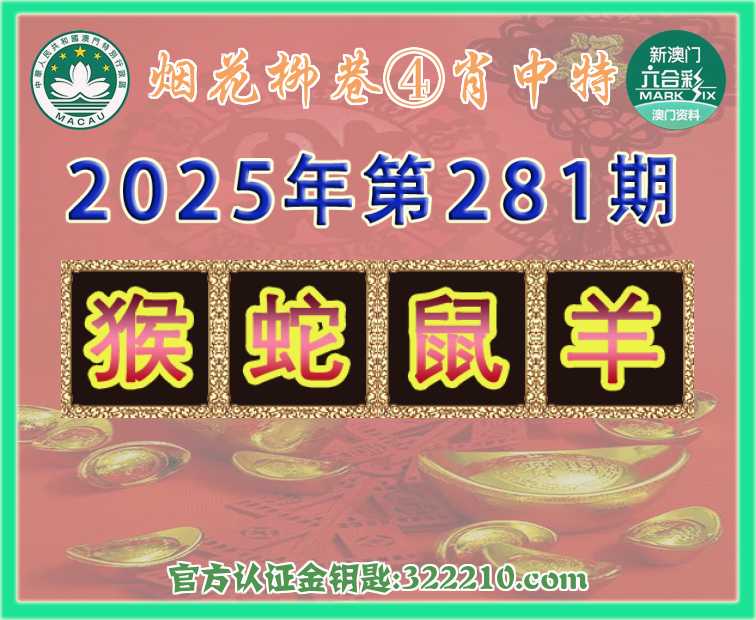 281期:【烟花柳巷】 🏅④肖中特🏅【猴.蛇.鼠.】开:羊47