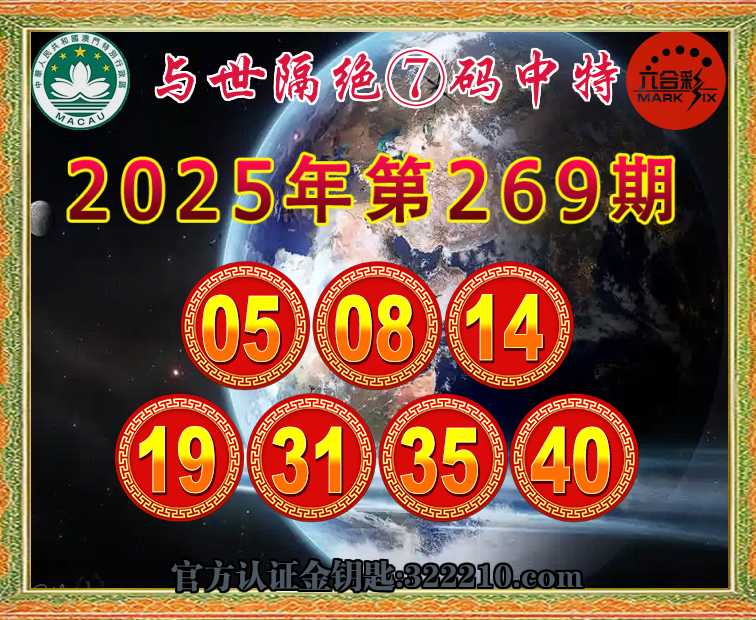 269期:【与世隔绝】 🥧⑦码中特🥧【05.08.14.19.31.35.40】开:31