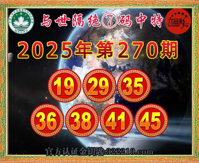 270期:【与世隔绝】 🥧⑦码中特🥧【19.29.35.36.38.41.45】开:35