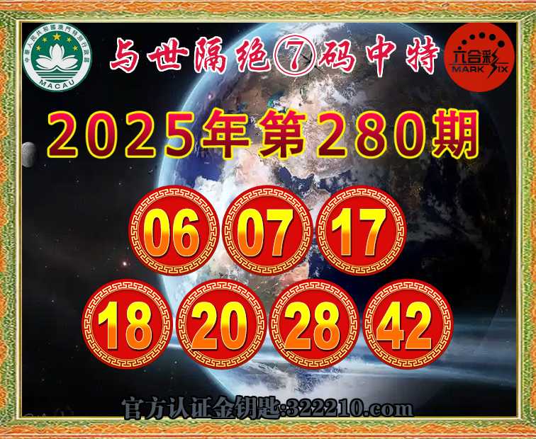 280期:【与世隔绝】 🥧⑦码中特🥧【06.07.17.18.20.28.42】开:42