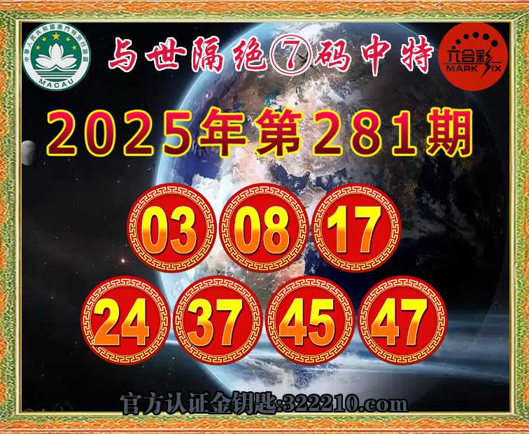 281期:【与世隔绝】 🥧⑦码中特🥧【03.08.17.24.37.45.47】开:47