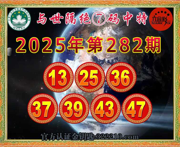 282期:【与世隔绝】 🥧⑦码中特🥧【13.25.36.37.39.43.47】开:41