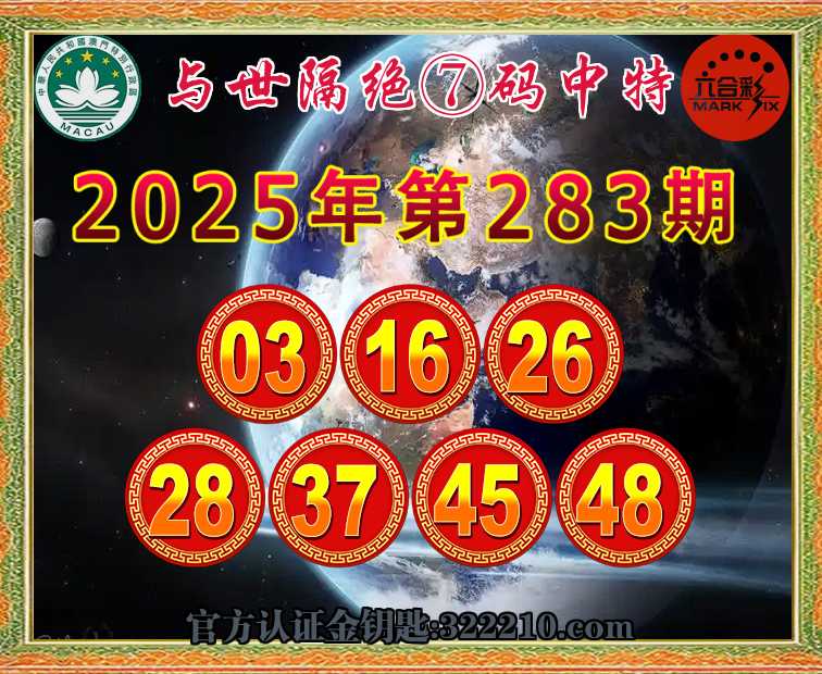 283期:【与世隔绝】 🥧⑦码中特🥧【03.16.26.28.37.45.48】开:45