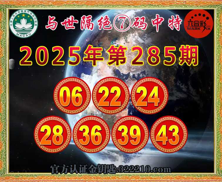 285期:【与世隔绝】 🥧⑦码中特🥧【06.22.24.28.36.39.43】开:24
