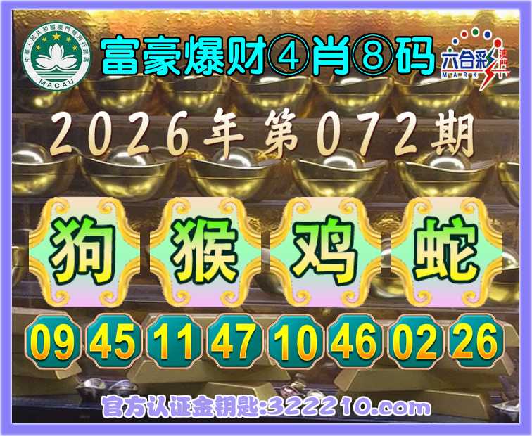 072期: ♥️『富豪爆财』 ♥️④肖⑧码♥️【狗猴蛇】开:鸡46